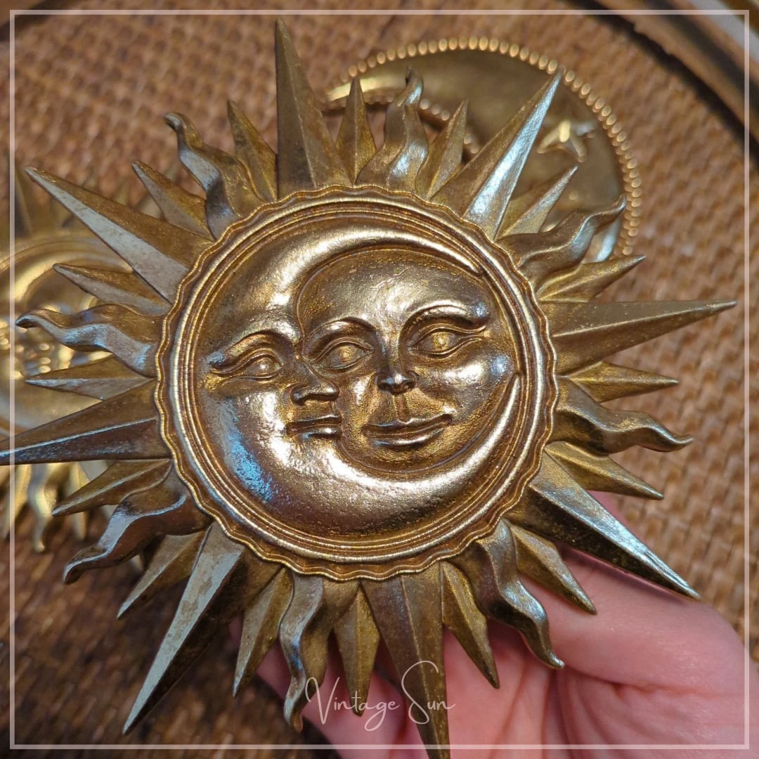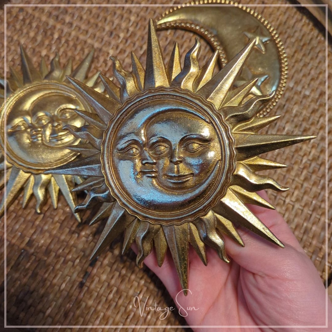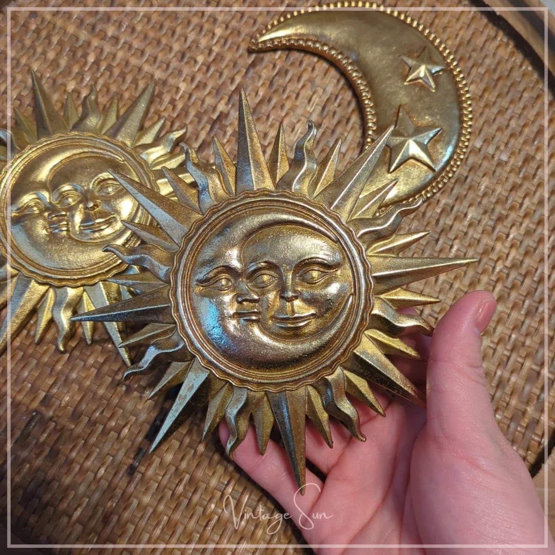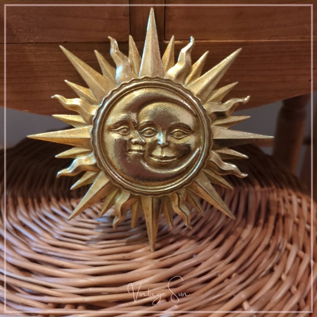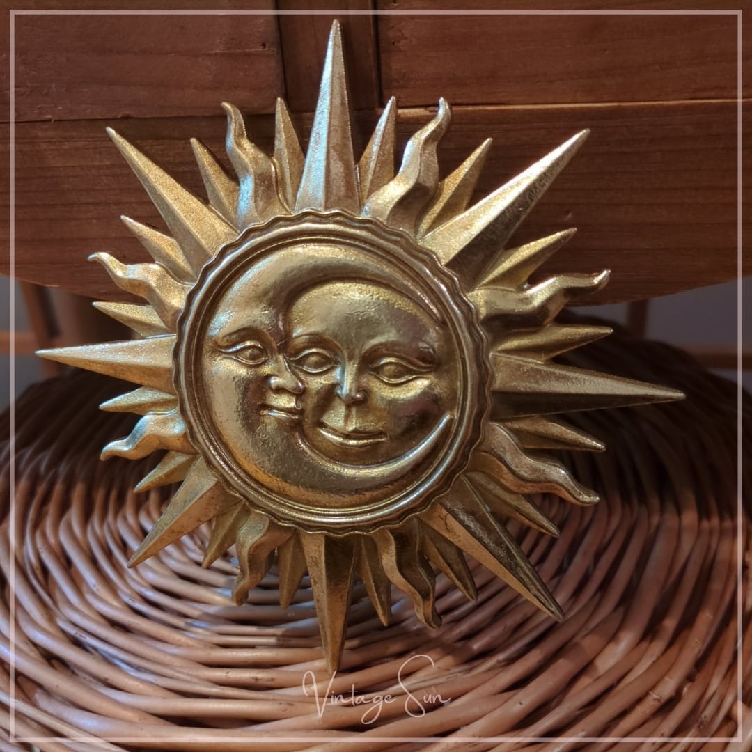 太陽と月が重なり合うデザインの壁掛けオブジェ。